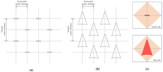 The perforation diagram of different sides: (a) Small side; (b) Large side; (c) Unit of each perforation.