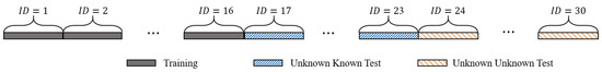 We define the unknown known and unknown unknown datasets. In the unknown known dataset, the samples (unit steps) are not used for training the encoding function (i.e., the CNN, RNN, or ensemble networks); instead, only a few samples are utilized for training the decision boundaries of individuals using OSVM. In the unknown unknown dataset, the samples are used only for testing.