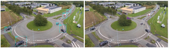 AU-AIR-Track is distilled from the AU-AIR dataset [32], which provides real-world sequences suitable for traffic surveillance and reflects prototypical outdoor situations captured from a UAV. AU-AIR contains sequences taken from a low flight altitude ranging from 10 to 30 m, under different camera angles ranging from approximately 45 to 90 degrees. For each frame, the dataset provides recording time stamps, Global Positioning System (GPS) coordinates, altitude information, IMU data, and the velocity of the UAV. A criterion in favor of AU-AIR is the low range altitude flights with the oblique point of view towards the scene it provides, the multiple occlusions offered by the tree in the roundabout and the duration of a scene is observed.