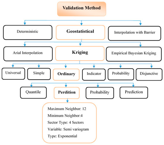The statistical validation process establishes trends and generates autocorrelation models using all of the input data, and then validates the generated maps by removing each data point one by one to predict its value using all other data points. A geostatistical method employing the kriging technique was selected for the cross-validation of generated maps.