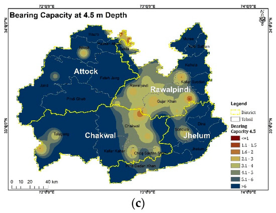 Figure 7. Allowable bearing capacity in comparatively planer areas ranges from 50 to 300 KN/m