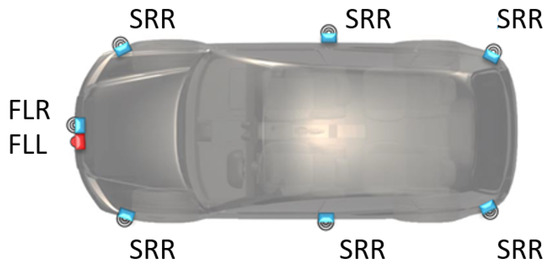 Sensor suite on the vehicle model (SRR—Short Range Radar; FLR— Forward Looking Radar; FLL—Forward Looking Lidar).