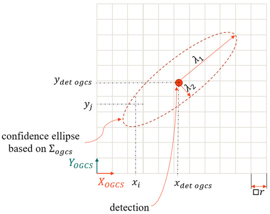 The general formula used for the Probability Density Function (PDF) (2) requires a covariance matrix which describes variances and covariances with respect to the Occupancy Grid Coordinate System (OGCS).