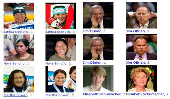 LFW is a public benchmark dataset for face recognition and classification [6,17]. LFW is made of 13,233 facial images of 5749 people, and consists of 150 × 150 color (RGB) images [6,17]. Figure 5 shows some of the FL images sampled from LFW.