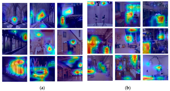 Figure 9 shows a visual attention heat map for the results of preferred and non-preferred classifications from the Indoor Scene Recognition dataset. Figure 9a shows some heat map results obtained by Grad-CAM for the correctly classified preferred images from the Indoor Scene Recognition dataset. Figure 9b shows the heat map results obtained by Grad-CAM for the correctly classified non-preferred images from the Indoor Scene Recognition dataset. As shown in the experimental results, we can see that the heat map provided by Grad-CAM is generally set in a meaningful feature area in the image where human preferences can be found. Therefore, we can conclude that it might be possible to explain a user’s preferences using heap maps generated by Grad-CAM. In order to confirm the explanatory feasibility of the subject’s preference using the results of Grad-CAM, we analyzed how well the area that influenced the subject’s preference decision matched the attention area of Grad-CAM. As shown in Table 5, analysis was performed on the test datasets of LFW and Indoor Scene Recognition. In the case of the LFW dataset, it was analyzed that the Grad-CAM results properly reflected the subject’s preference for 312 images out of 465 images correctly classified as preferred images among the 1000 test images. On the other hand, it was analyzed that the Grad-CAM results for 238 images out of 371 images correctly classified as non-preferred images properly reflected the subject’s disfavor. In addition, the experimental results showed that the attention heat maps of the Grad-CAM results were matched to the subject’s preference decision by 66.68% and 60.74% of the preferred images and non-preferred images, respectively. Accordingly, the Grad-CAM results might be utilized to partially explain personal preference, even though it is insufficient to describe the subject’s visual preference with only current Grad-CAM results.