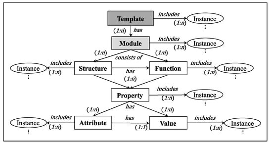 The process to select a proper template class and its instance is also applied equally to each module organizing the template instance. A structural module class can contain several functional classes, and the module instances are selected by retrieving the module that has properties corresponding to the requirements. Each module class contains property classes and instances constructing each module. Every property class includes the classes of attributes and values, and the combination of each instance represents a property instance. Moreover, this construction can be used in the process of retrieving and modifying weapon system models that satisfy the demands.