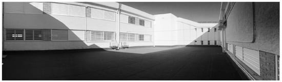 Case Study 1. The first case study is a public school building located in a district in the north of the city. It has a central courtyard on the upper floors where the study is held. The courtyard is in direct contact with the nearby rooms. All of them are classrooms. The courtyard’s pavement is coated with a black waterproofing material (Figure 2).