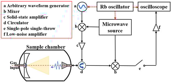 In recent years, with the continuous updating of microwave electronic devices [,,], Fourier transform microwave spectroscopy detection technology has developed rapidly. Researchers not only improved the scanning bandwidth, but also took the high sensitivity and high resolution into account at the same time, and provided a series of auxiliary sample preparation technologies for spectrometers, such as laser photolysis [] and high voltage discharge []. In addition to dealing with problems such as molecular structure and intermolecular interactions [,], FTMW spectroscopy is also applied to study the dynamic process of complex chemical reaction systems [], and sensitively detect chiral compounds []. Therefore, it plays a significant role in the fields of chemical analysis, pharmaceutical detection and radio astronomy [,].