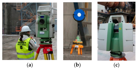 - Totálne Stanice Leica TPS1200+. Technické Parametre a Porovnanie. Available online: https://www.geotech.sk/downloads/Totalne-stanice/TPS1200+-technicke-parametre.pdf (accessed on 6 October 2020).
