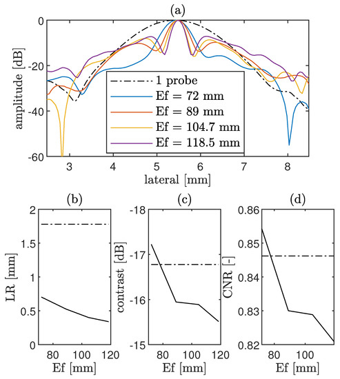 - Bottenus, N.; Pinton, G.; Trahey, G. Large coherent apertures: Improvements in deep abdominal imaging and fundamental limits imposed by clutter. In Proceedings of the 2016 IEEE International Ultrasonics Symposium (IUS), Tours, France, 18–21 September 2016; pp. 1–4. [Google Scholar]