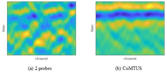- Peralta, L.; Gomez, A.; Hajnal, J.V.; Eckersley, R.J. Coherent multi-transducer ultrasound imaging in the presence of aberration. In Proceedings of the Medical Imaging 2019: Ultrasonic Imaging and Tomography, International Society for Optics and Photonics, San Diego, CA, USA, 17–18 February 2019; Volume 10955, p. 109550O. [Google Scholar]