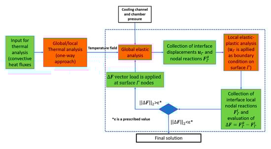 - if is greater than a prescribed limit Ɛ, then the process comes back to step 1 where is applied to the Global model at the interface ,