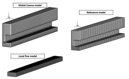 - Reference Model—it is a nonlinear model in which the discretization corresponds to that of the Local Model in the submodelled domain and to that of the Global Model in the remaining part of the domain.
