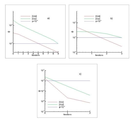 The present iterative procedure for Local Model 3 is very efficient since rapidly decreases after only two iterations; for instance, the configuration with is such that, after only two iterations, and values become lower than 2 % and 0.3 %, respectively. The configurations with and ensure good results even if slightly increases after the first iteration (see Figure 16 and Figure 17).