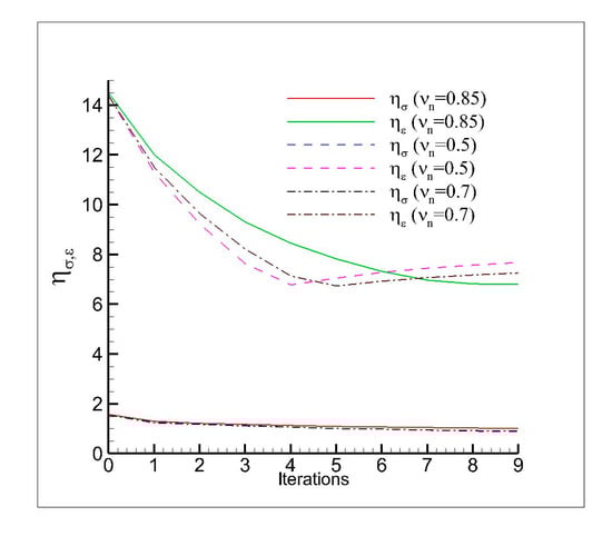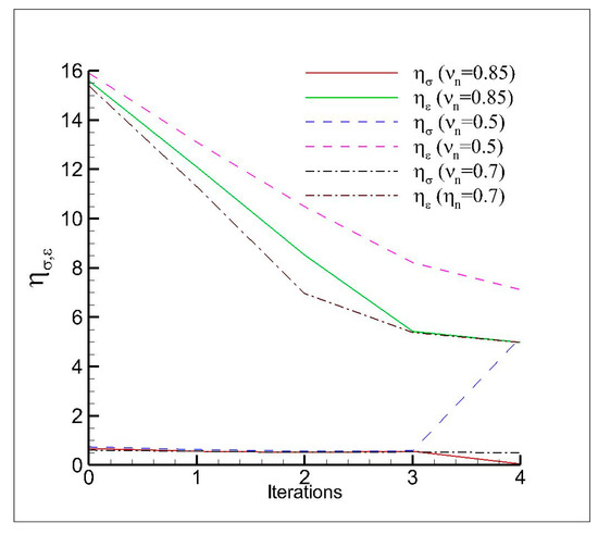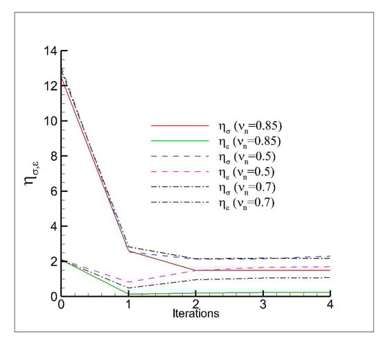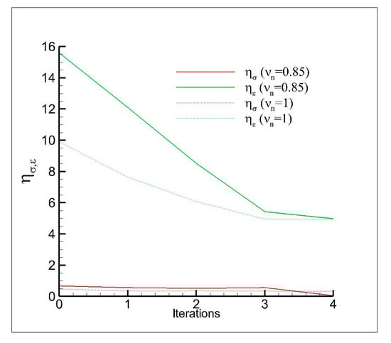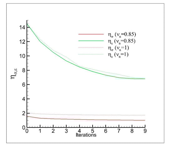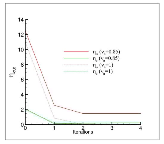 With regard to local models 4 and 5, the results, in terms of convergence history, and , are very similar to those obtained with “Local Model 3”. Table 10 summarizes the values obtained when adopting local models 4 and 5.