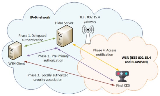 Hidra [] is a security protocol that guarantees both authentication and authorization of a remote subject wanting to establish an E2E connection with a CDS. The aim of Hidra is to offer a strong and dynamic access control solution that can be implemented even in the most constrained devices.
