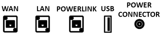 The option to expand the system with the various types of add-ons based on the software solution mentioned above requires hardware preparation. In the case of Phollower, this is ensured by the set of connectors placed on the top of the cover plate (detailed in Figure 11). These connectors provide the power input, connection to the LAN Ethernet, connection to the open-Powerlink bus, four preset digital inputs, and another four preset digital outputs. These digital I/Os can be used immediately in cooperation with the add-ons shown in Figure 12. The combination of the available interfaces creates a versatile system able to be expanded with a set of additional I/O cards, with drivers for small or mid-size electrical drives, with various display units or additional safety features.