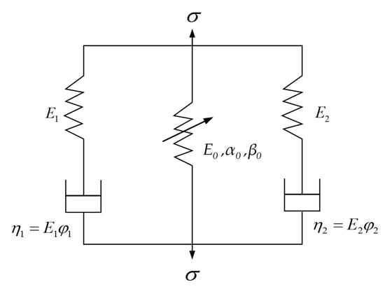 ZWT model [34,35] is a nonlinear viscoelastic constitutive model and is suitable for the strain rate of 10−4 s−1–103 s−1. Researchers have conducted some studies on the application of ZWT model in the dynamic constitutive model of concrete. The ZWT model is shown in Figure 12.