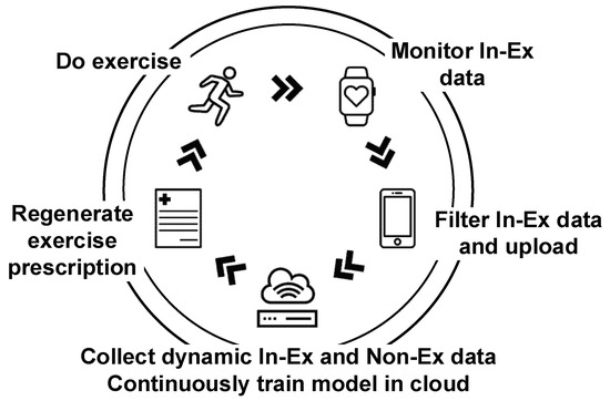 With the development of artificial intelligence, Internet technology, smart exercise equipment, and smart wearable devices, more and more people are becoming willing to use these technologies for exercise, whether out of curiosity or because they want to use them for scientific fitness. At the same time, many non-invasive static human data acquisition devices have become commonplace, and many hospitals and communities are already using them. The smart health system that we designed can easily process the in-exercise and non-exercise data collected by the above two ways. The system, which includes a mobile application, website, cloud server, smart wearable device, and other platforms, generates personalized prescriptions for users by learning the data. The system also includes many functions for public health, and exercise prescription is just one module of it.