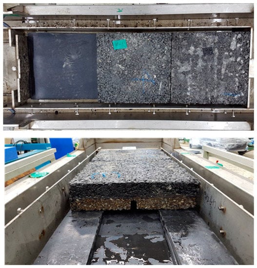 - Temperature condition: the surface temperature of the pavement is maintained at 20~25 °C using an air-conditioning system