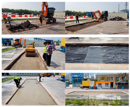 - Kwon, O.; Moon, K.; Kim, J.; Lee, J. A Study of Application Method of Asphalt Overlay on Aged Concrete Pavement; Report No. KECRI-2017-31-534.9607; Expressway & Transportation Research Institute: Dongtan-si, Korea, 2017. [Google Scholar]