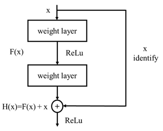 ResNet was developed to overcome a limitation in training deep networks where training errors can increase as the number of layers increases [20]. Owing to modified architectures, ResNet models have been empirically confirmed to enhance learnability of neural networks with less error on defined tasks using a limited number of layers [32]. ResNet consists of residual blocks with shortcut connections as shown in Figure 3, where the formulation H(x) is the desired mapping output of a specific layer and x is the input data. Given the presence of shortcut connections, gradient-based optimisation algorithms work effectively under ResNet-based architectures and improve the learnability of weight layers representing the function F(x) [33].