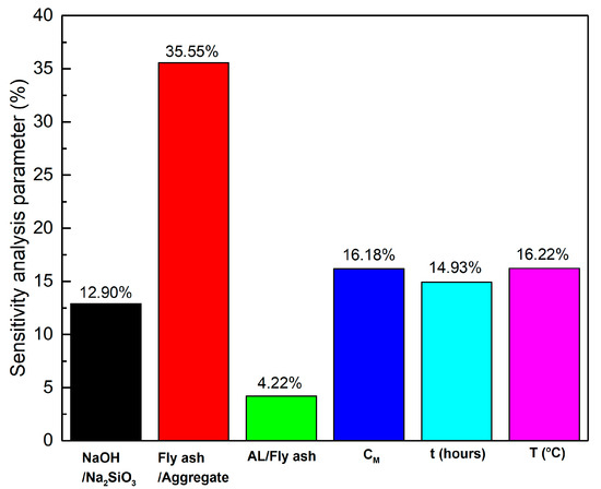 Sensitivity analysis parameters for the estimated compressive strength of FAGP concrete.