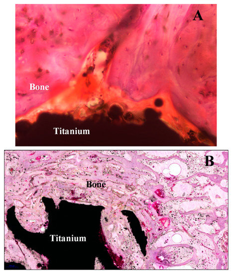 - Pazzaglia, U.; Bernini, F.; Zatti, G.; Dinucci, A. Histology of the metal-bone interface: Interpretation of plastic embedded slides. Biomaterials 1994, 15, 273–277. [Google Scholar] [CrossRef]