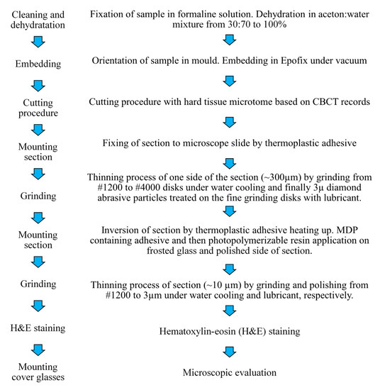 - Caropreso, S.; Bondioli, L.; Capannolo, D.; Cerroni, L.; Macchiarelli, R.; Condò, S.G. Thin sections for hard tissue histology: A new procedure. J. Microsc. 2000, 199, 244–247. [Google Scholar] [CrossRef] [PubMed]