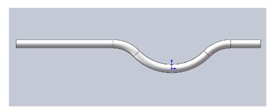 In order to simulate actual conditions and observe flow patterns in gas-containing fluids, the DN25 micro-bend measuring tube is connected with a long straight tube with a length of 10D in the front and a short tube with a length of 2D to the back. The test device is shown in Figure 2, wherein the micro-bend pipe refers to the size of Promass F single-frequency Coriolis flowmeter by E+H company [3].