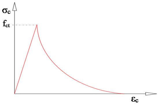 For the crack analysis, the constitutive model of concrete is defined using normal to the crack (mode-I) parameters. In mode-I fracture definition, the important material parameters are the fracture energy ( and the tensile softening function. In this study, a total strain crack formulation with the exponential tension-softening curve as shown in Figure 2 was adopted. For the tension-softening curve, the fracture energy was calculated using the following equation [13]: