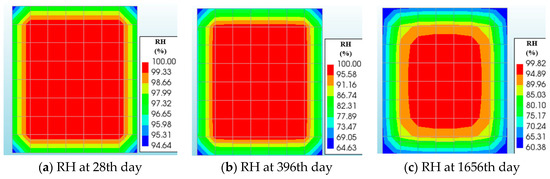 Relative humidity (RH) distribution along the section of the short-span PSC beam.