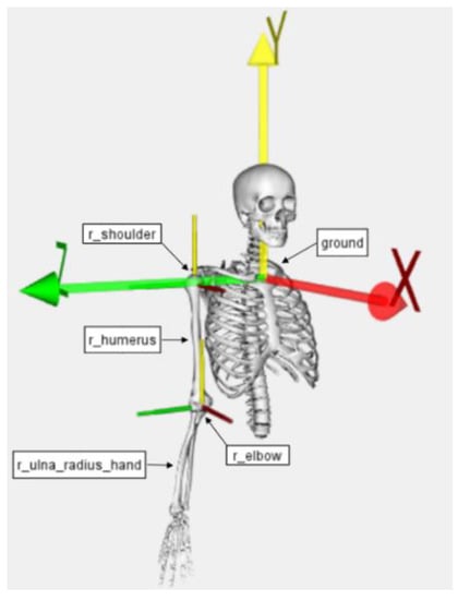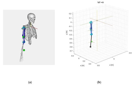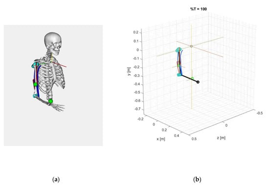 - Holzbaur, K.R.S.; Murray, W.M.; Delp, S.L. A Model of the Upper Extremity for Simulating Musculoskeletal Surgery and Analyzing Neuromuscular Control. Ann. Biomed. Eng. 2005, 33, 829–840. [Google Scholar] [CrossRef]