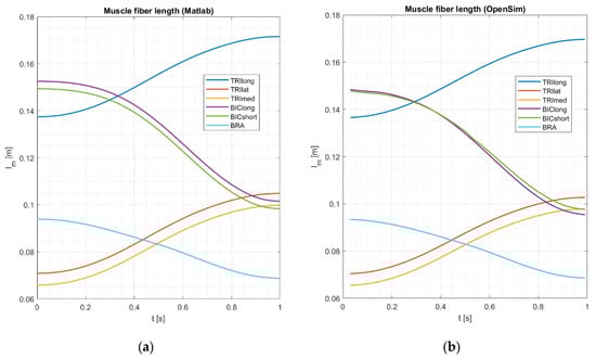 - despite the kinematical analysis, exactness is noticeable, the only difference found was a small overestimation of the long biceps muscle fibre length, probably due to the different wrapping algorithm used by OpenSim;