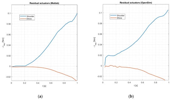 Residual actuators: (a) Matlab and (b) OpenSim.