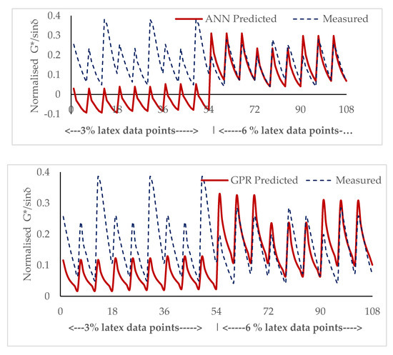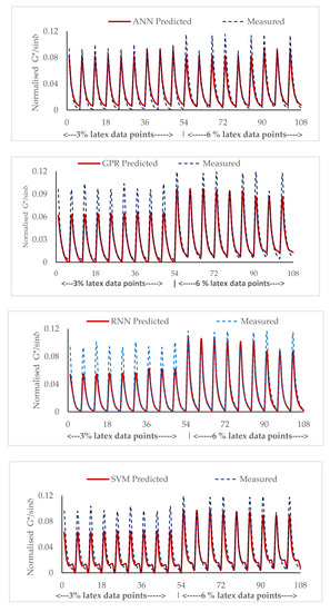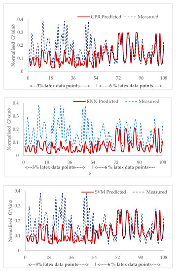 The results in Table 4 show that all model training performed substantially well. However, high model training accuracy does not translate to performance with a simulation of a new dataset that was not previously used in the model calibration. All the models did not perform well with M-L-3 mix simulation dataset. However, the proposed GPR within the two mixes (M-L-3 and M-L-6) used for simulation performed better than ANN, RNN and SVM models. The poor performance of the models at 3% latex modification could be attributed complex chemical and physical changes that takes place during short and long term binder ageing conditioning.