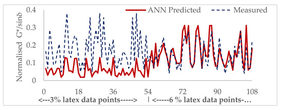 The results of the prediction of the Superpave® rutting parameter are presented in Table 3 and Figure 2. The main motivation of this section is to explore the possibilities of using an unaged input parameter to predict the Superpave® (G*/sinδ) rutting parameter. As stated in the previous section, the G*/sinδ parameter is valuable in estimating rutting susceptive in asphalt binder. However, experimental measurements to determine the values of G*/sinδ at different PG (performance grade) temperatures is expensive and involve advanced equipment.