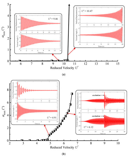 - Zhang, M.; Xu, F.; Ying, X. Experimental Investigations on the Nonlinear Torsional Flutter of a Bridge Deck. J. Bridg. Eng. 2017, 22, 04017048. [Google Scholar] [CrossRef]
