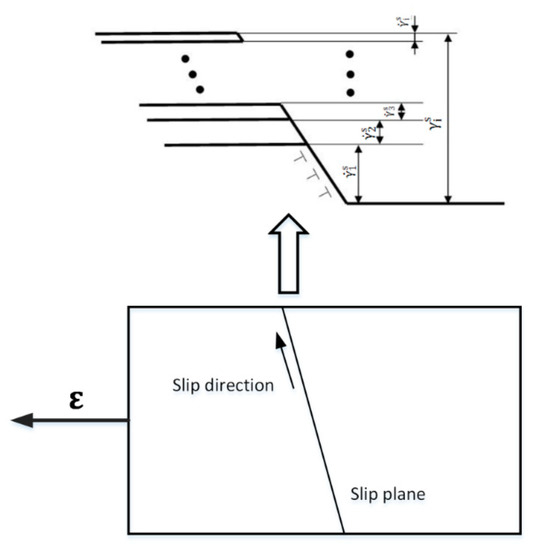 where is the resolved shear strain increment. Therefore, the shear strain of slip systems at step i, , can be calculated by accumulating (see Figure 3):