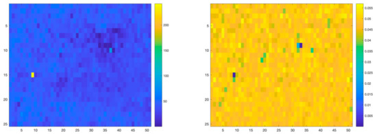 Figure 7 graphically represents the per-pixel root mean square error (RMSE) obtained after reconstructing the Raman Spectral maps, using the linear approach and the proposed nonlinear approach, respectively. As can be seen, the proposed nonlinear method improves the quality of the map reconstruction.