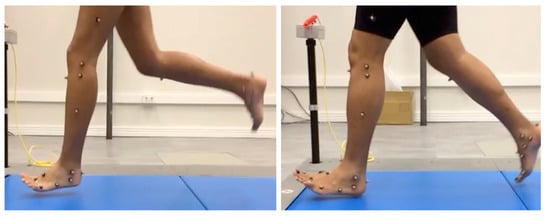 The footstrike pattern of runners has received much attention in the past decade, particularly the differences between rearfoot strike (RFS) and midfoot or forefoot strike (FFS). This increasing interest in footstrike patterns can be justified by the possible associations with running-related injuries [,,,]. In particular, FFS has been found to be associated with the attenuation of the lower limbs loads, which helps to reduce the incidence of running-related injuries [,]. However, RFS mitigates part of the Achilles tendon loading rate the foot is accountable for, especially in early stance [].