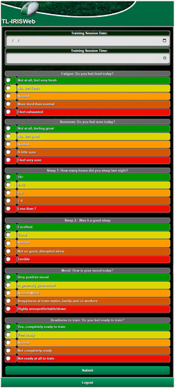 The TMS was introduced to the players and coaches by means of a 20-min presentation, given in person by the primary author or via video recording. This presentation outlined the purpose and potential benefits of their participation, the definition and explanation of each of the measures included, and a demonstration of how to use the system.