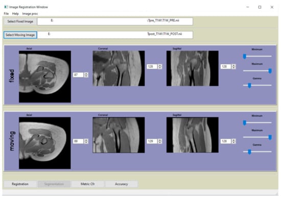 All processing and registration steps described in paragraph 2.3 were incorporated in a Python-based (http://www.python.org) software (v3.7.0, Python Software Foundation, Beaverton, OR 97008, USA) and graphical user interface (GUI). A screenshot of the main window is shown in Figure 3.