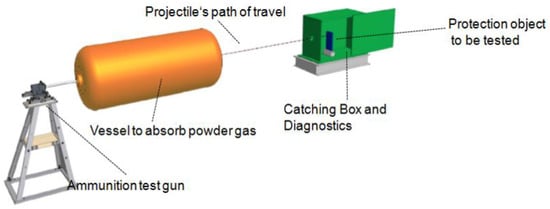 All ballistic experiments were carried out using a powder gun with a distance of 10 m to the target (Figure 1).