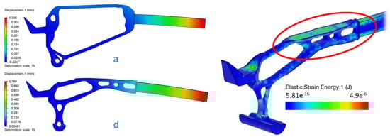 Figure 9 depicts part deformations and shows that concept (a) has a maximum displacement less than half of concept (d).