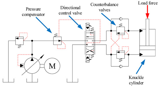 - Sørensen, J.K.; Hansen, M.R.; Ebbesen, M.K. Load Independent Velocity Control on Boom Motion Using Pressure Control Valve. In Proceedings of the Fourteenth Scandinavian International Conference on Fluid Power, Tampere, Finland, 20–22 May 2015. [Google Scholar]