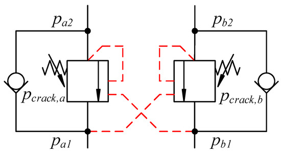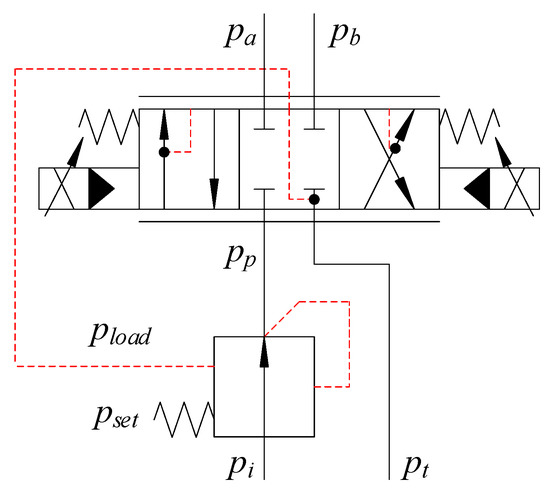 The sensing of the load pressures and ensures that the pressure drop over the directional control valve always equals , and that the flow is load independent. This is shown in the orifice equation in Equation (17).