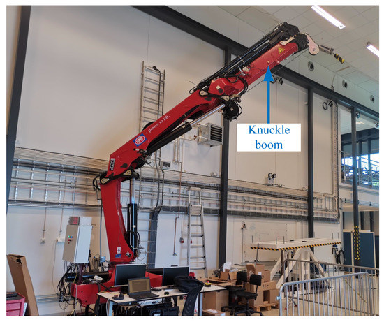 - Jensen, K.J.; Kjeld Ebbesen, M.; Rygaard Hansen, M. Development of Point-to-Point Path Control in Actuator Space for Hydraulic Knuckle Boom Crane. Actuators 2020, 9, 27. [Google Scholar] [CrossRef]