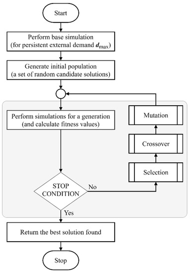Among the attractive AI methods, genetic algorithms (GAs) are relatively well investigated regarding general optimization problems. They form a kind of metaheuristics based on the phenomenon of biological evolution that explores the space of alternative problem solutions to reach the best one, which is quantified through a predefined fitness function [18]. Nowadays, GAs are increasingly used in real-life problems. Jauhar and Pant [19] and Lee [20] note that despite the invention of numerous modern soft computing techniques, GAs are still widely used by scientists in optimization problems. Besides industrial applications, many organizational challenges might be addressed using GAs, e.g., traffic flow control [21]. These real-life problems require a different implementation and tuning philosophy of GAs compared to the benchmark ones due to the substantial computational investment in assessing the population fitness [18]. In order to obtain a solution in a reasonable time, the number of fitness function evaluations needs to be greatly constrained compared to the benchmark cases.