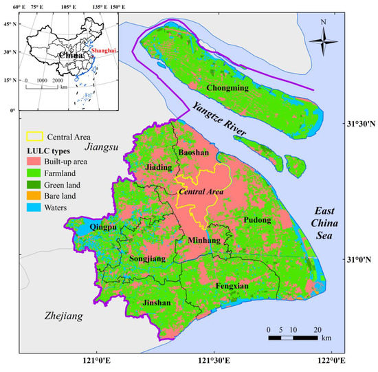 59. Yin, J.; Yin, Z.E.; Zhong, H.D.; Xu, S.Y.; Hu, X.M.; Wang, J.; Wu, J.P. Monitoring urban expansion and land use/land cover changes of Shanghai metropolitan area during the transitional economy (1979–2009) in China. Env. Monit Assess. 2011, 177, 609–621. [Google Scholar] [CrossRef]